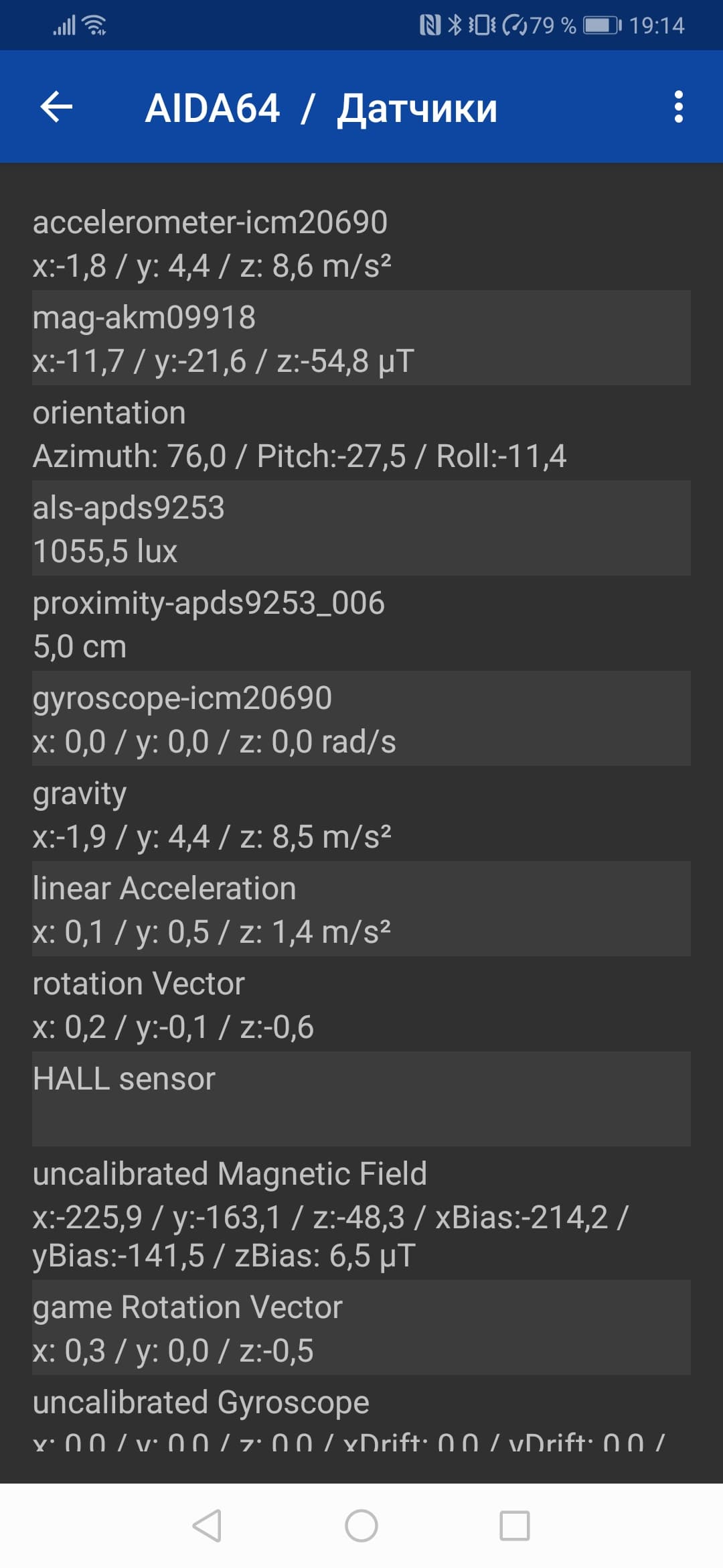 - Датчики приближения и освещения, магнитного поля, акселерометр, гироскоп
