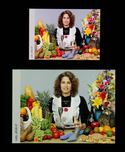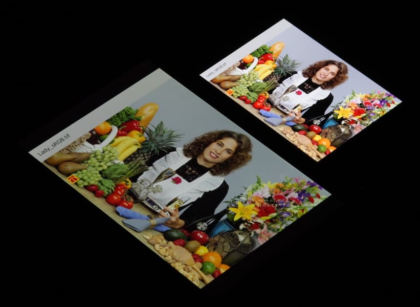 Отметим, что на экранах с широким цветовым охватом (без соответствующей коррекции) цвета́ обычных изображений, оптимизированных для устройств sRGB, выглядят неестественно насыщенными. Отсюда и рекомендация: в большинстве случаев смотреть кино, фотографии и все естественное лучше при выборе профиля Обычные, и только если фотография или видео имеют охват DCI-P3, принятый в цифровом кинематографе и «родной» для топовых устройств Apple, имеет смысл переключить профиль на Яркие.