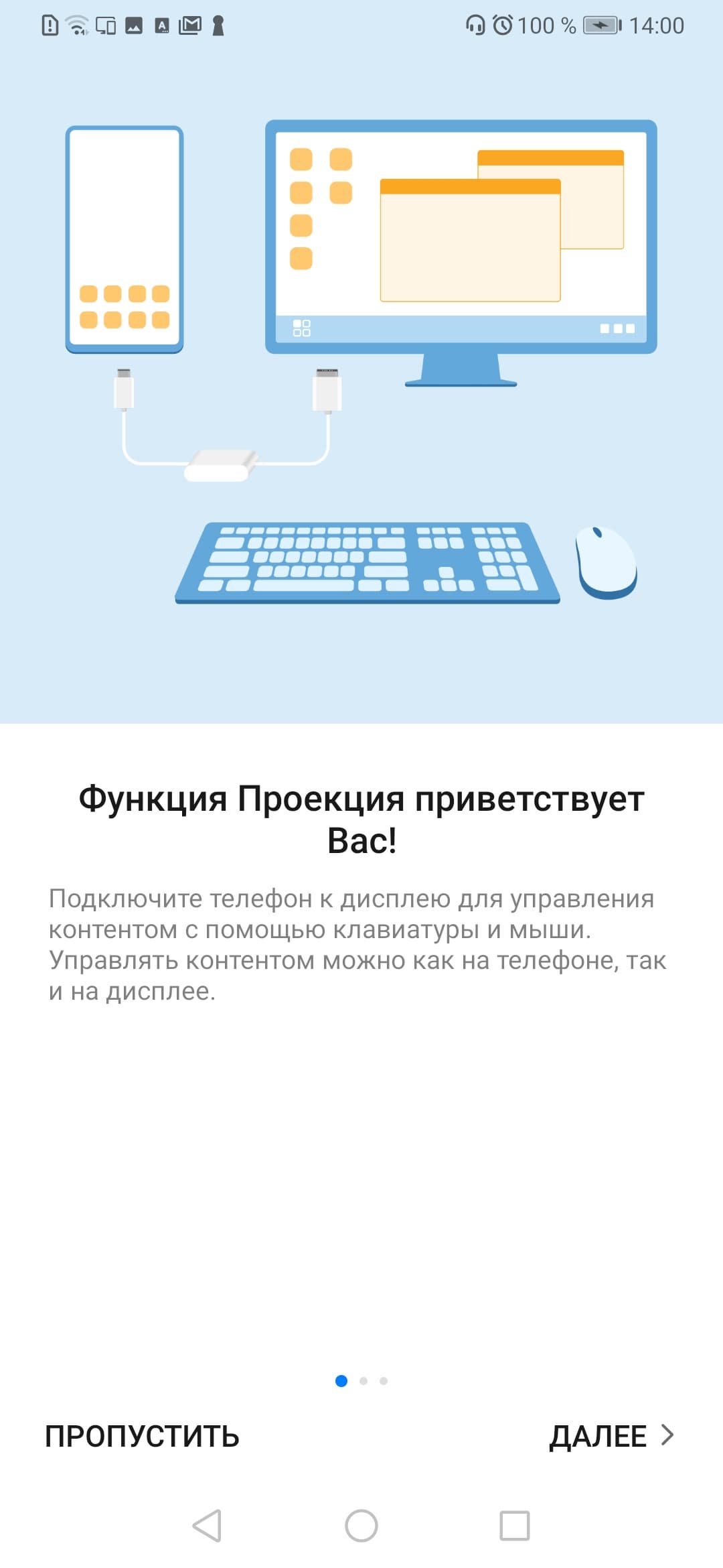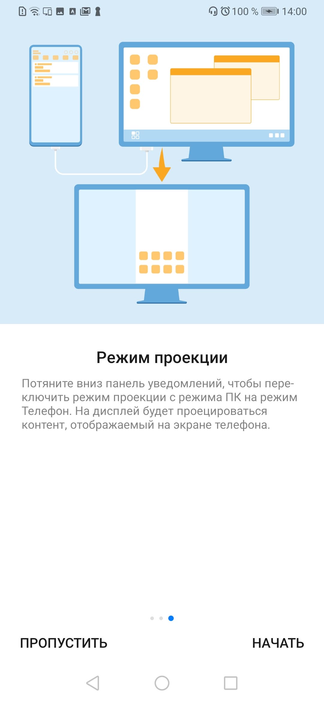 Данный аппарат поддерживает DisplayPort Alt Mode для USB Type-C — вывод изображения и звука на внешнее устройство при подключении к порту USB. Работу в таком режиме мы опробовали совместно с док-станцией Aten UH3234. При подключении к нашему монитору вывод видео осуществляется в режиме 1080p при 75 Гц кадровой частоты. Режимов работы два: вывод альтернативного рабочего стола (режим ПК) или простое копирование экрана смартфона (режим Телефон).