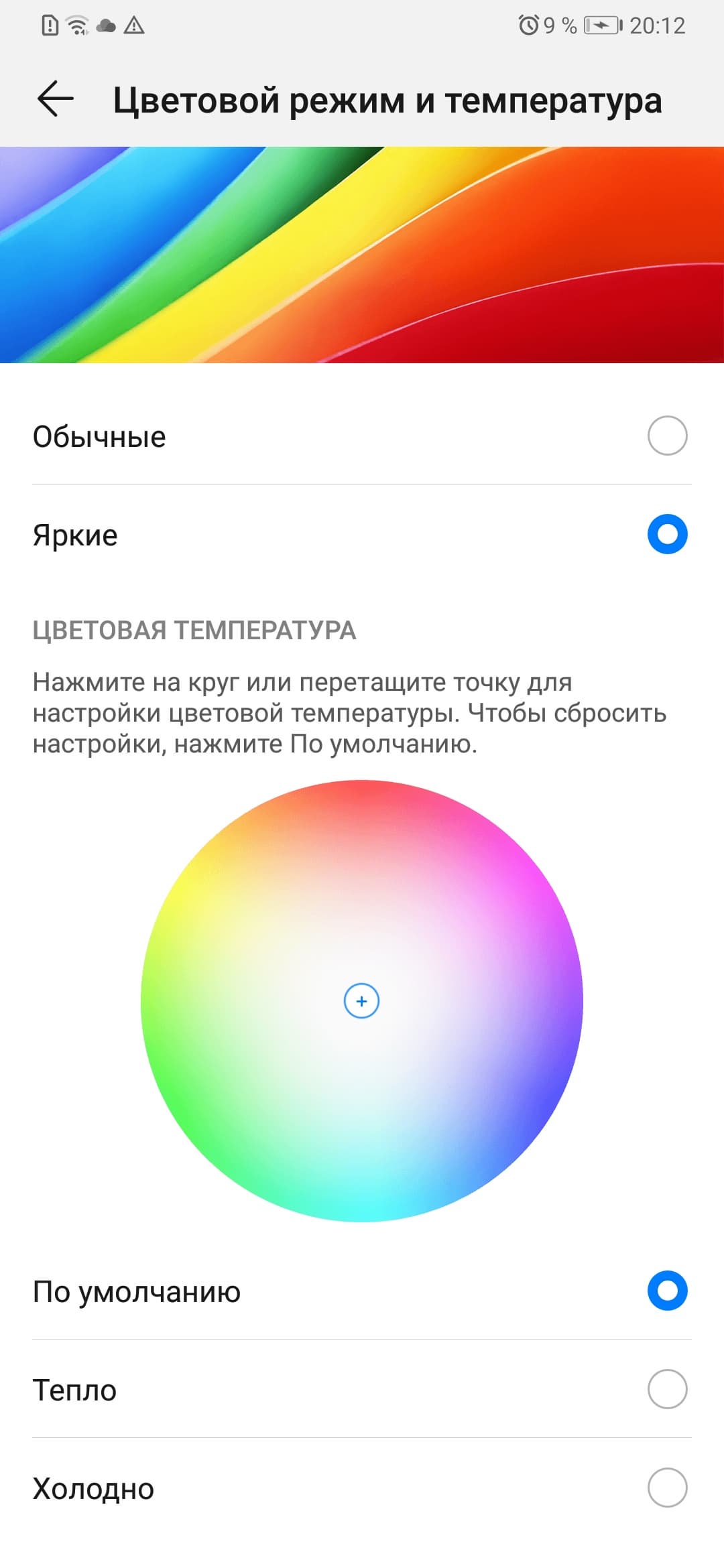 Фотография выше получена после выбора профиля Обычные в настройках экрана, всего их два: