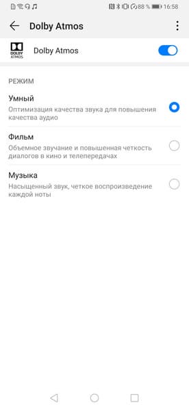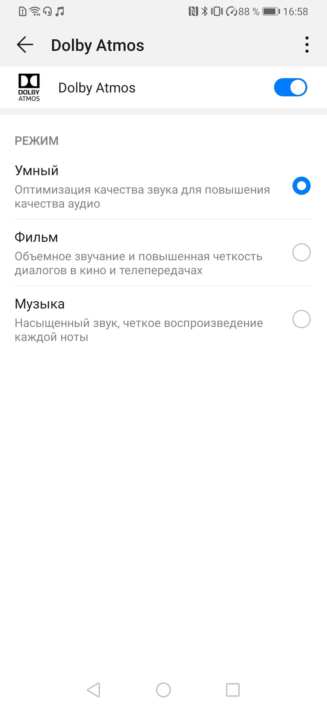 Смартфон не получил стереодинамиков, но звучание единственного динамика все равно весьма яркое, насыщенное, чистое и довольно громкое. В наушниках звучание тоже добротное, хотя это не музыкальное решение. Но зато у смартфона есть 3,5-миллиметровый аудиовыход на наушники, и аппарат поддерживает все кодеки для работы беспроводных наушников: aptX и aptX HD, LDAC HD, а также HWA Audio собственной разработки Huawei. Настройки Dolby Atmos позволяют внести в звук изменения на собственный вкус. Есть качественный диктофон, а вот FM-радио в смартфоне не установили.