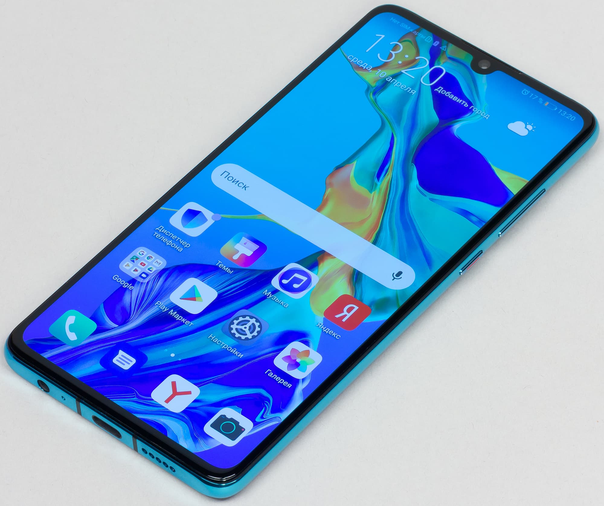 В отличие от P30 Pro, у которого нет даже привычной прорези разговорного динамика, здесь имеется вполне традиционный динамик, скрытый за решеточкой.