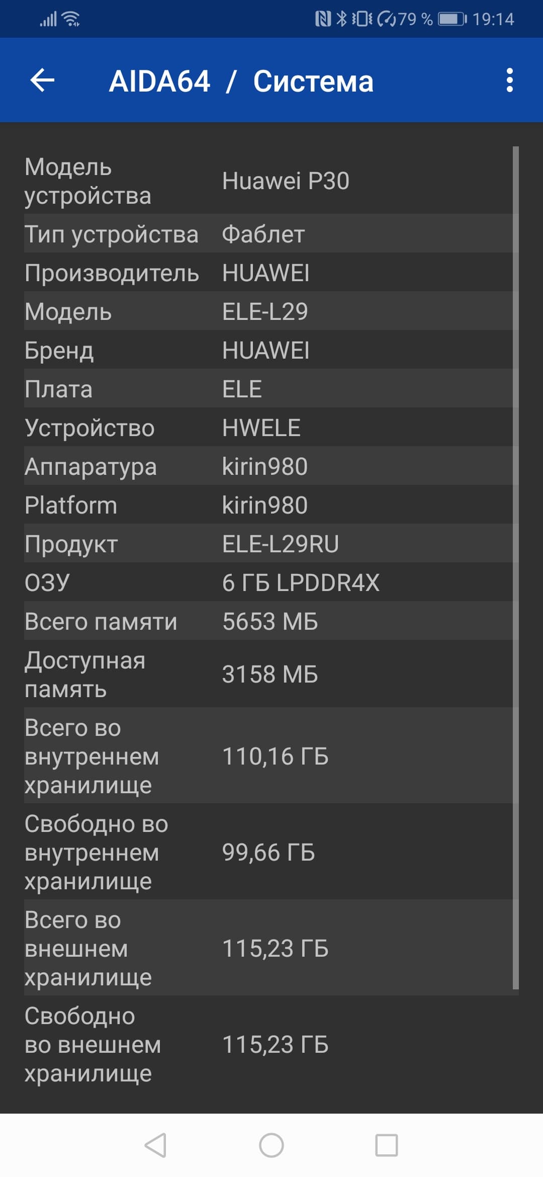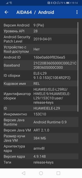 Основные характеристики Huawei P30 (модель ELE-L29)