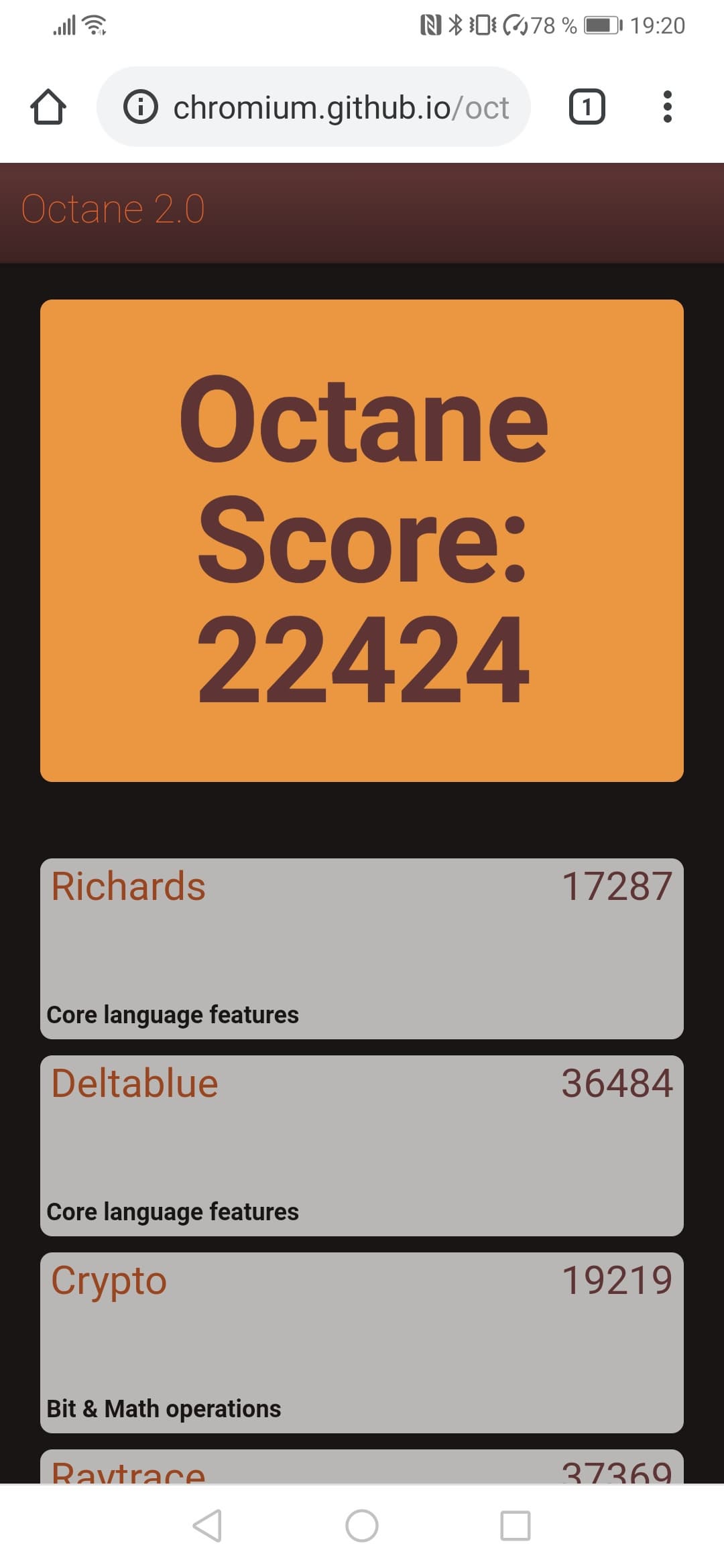 | Google Octane 2 (больше — лучше) | 22424 | 18909 | 25361 | 15126 | 15042 |