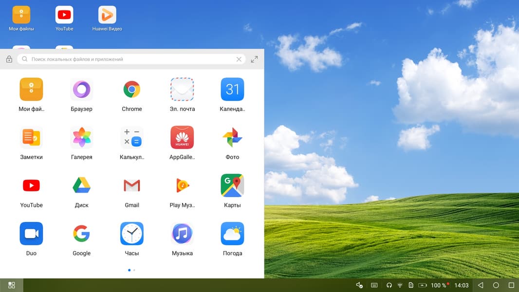Во втором случае при портретной ориентации экрана смартфона картинка на мониторе Full HD выводится вписанной по высоте и с широкими черными полями по бокам, а при ландшафтной — вписанной по ширине с узкими черными полями сверху и снизу. Вывода точка в точку в обоих вариантах нет. В режиме альтернативного рабочего стола на монитор выводится совершенно другой основной экран, а экран смартфона может использоваться в качестве сенсорной панели координатного ввода или быть планшетом для рисования поверх рабочего стола или работать как обычно, вторым рабочим столом небольшого размера. Вот пример рабочего стола на экране монитора: