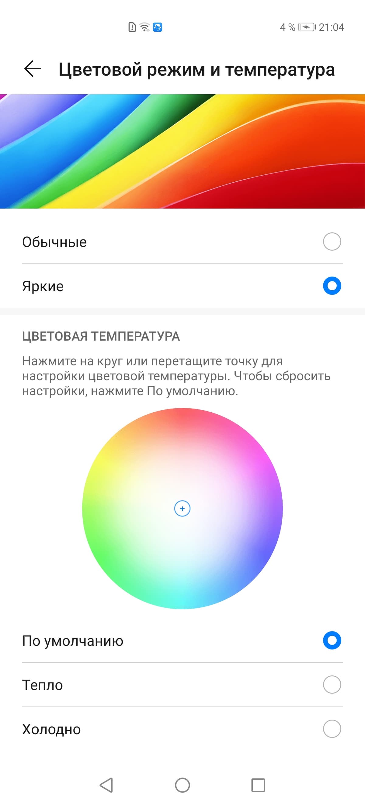 Отметим, что на экранах с широким цветовым охватом (без соответствующей коррекции) цвета́ обычных изображений, оптимизированных для устройств sRGB, выглядят неестественно насыщенными. Отсюда и рекомендация: в большинстве случаев смотреть кино, фотографии и все естественное лучше при выборе профиля Обычные, и только если фотография или видео имеют охват DCI-P3, принятый в цифровом кинематографе и «родной» для топовых устройств Apple, имеет смысл переключить профиль на Яркие.
