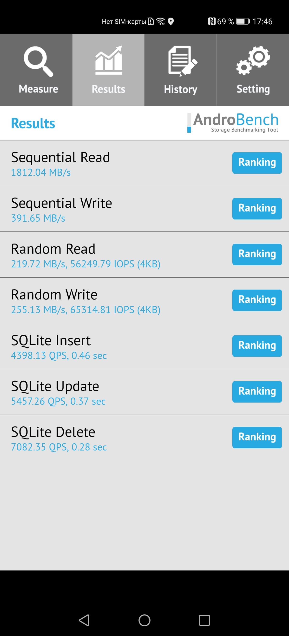 Объем оперативной памяти составляет 8 ГБ, объем хранилища — 256 ГБ. Нельзя установить в смартфон карту памяти знакомого всем формата microSD, но можно исхитриться раздобыть редкую собственную карточку Huawei NM. Поддерживается подключение внешних устройств к порту USB Type-C в режиме USB OTG.