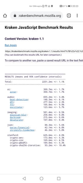 Что касается бенчмарков для оценки скорости движка javascript, то стоит всегда делать скидку на то, что в них результаты существенно зависят от браузера, в котором запускаются, так что сравнение может быть истинно корректным только на одинаковых ОС и браузерах, а такая возможность имеется при тестировании не всегда. В случае с ОС Android мы всегда стараемся использовать Google Chrome.