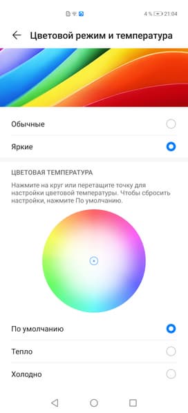 Фотография выше получена после выбора профиля Обычные [цвета] в настройках экрана, всего их два:
