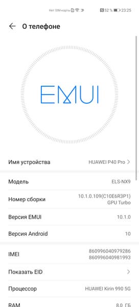 - Операционная система Android 10.0 (AOSP + HMS); EMUI 10