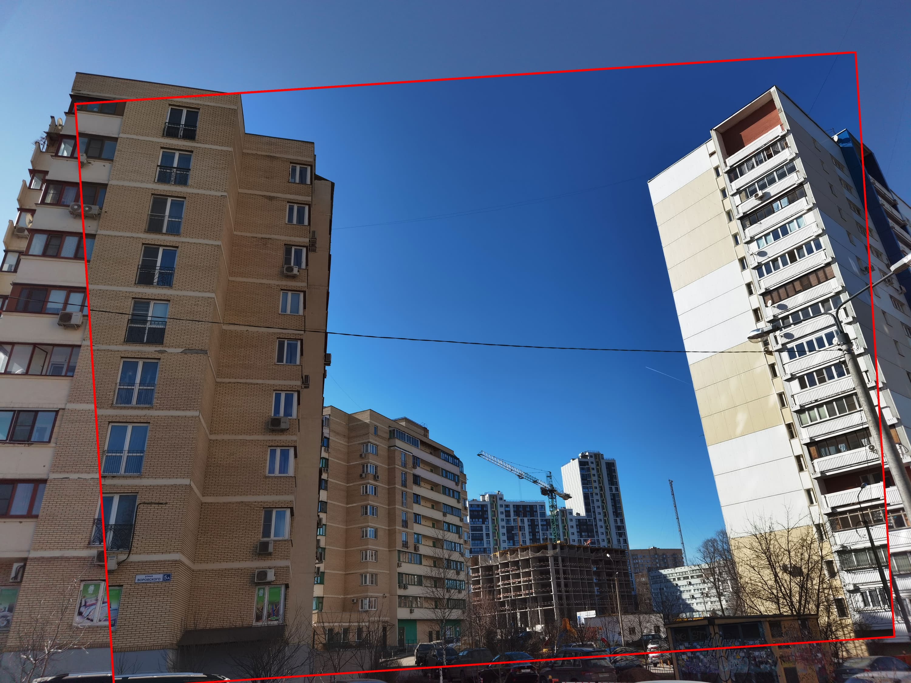 Получается, что при внутреннем масштабировании фотографий до разрешения 12,5 Мп они теряют по дороге 10%-15% информации. Если бы они при этом получали разрешение порядка 11 Мп, цифры, опять-таки, сходились бы. Мы могли бы удивиться такому странному алгоритму, но, с другой стороны, чрезмерная широкоугольность нужна далеко не всем и не всегда, так что вариант приемлемый. Однако сейчас эти ≈11 Мп, судя по всему, растягиваются до разрешения 12,5 Мп, которое мы ожидали бы увидеть при честном уменьшении исходника в 4 раза, так что и качество при этом, надо полагать, немного страдает. В общем, очень странное решение.