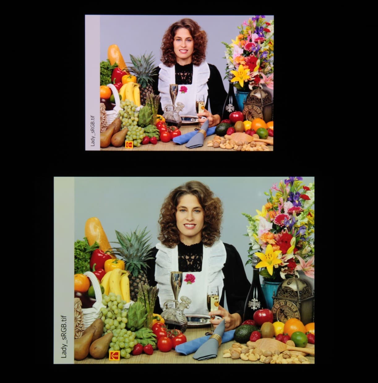 Отметим, что на экранах с широким цветовым охватом (без соответствующей коррекции) цвета́ обычных изображений, оптимизированных для устройств sRGB, выглядят неестественно насыщенными. Отсюда и рекомендация: в большинстве случаев смотреть кино, фотографии и все естественное лучше при выборе профиля Обычные, и только если фотография или видео имеют охват DCI-P3, принятый в цифровом кинематографе и «родной» для топовых устройств Apple, имеет смысл переключить профиль на Яркие.