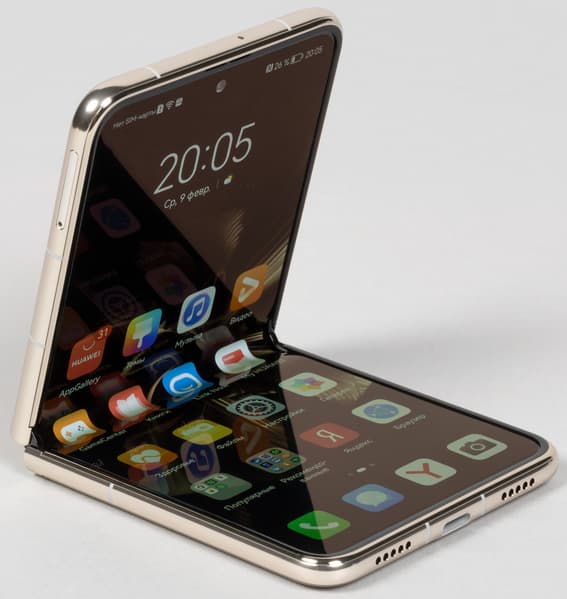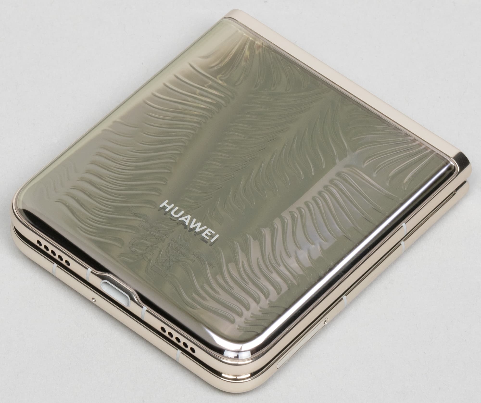 В раскрытом состоянии по расположению элементов на корпусе аппарат ничем не отличается от обычных смартфонов. Обе клавиши расположены на одной боковой грани. Грани сделаны округлыми и максимально скользкими — у Huawei с этим постоянно что-то не так: смартфон практически невозможно крепко удерживать в руке, он ощущается куском мыла. Аппарат норовит выскользнуть и в раскрытом состоянии, а особенно осторожным приходится быть при раскрытии половинок. К тому же тяжелые половинки не расхлопываются самостоятельно, их необходимо вручную разводить почти до самого конца.