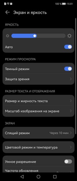 В настройках экрана можно включить режим с повышенной до 120 Гц частотой обновления: