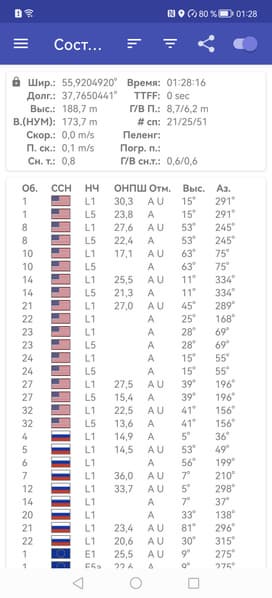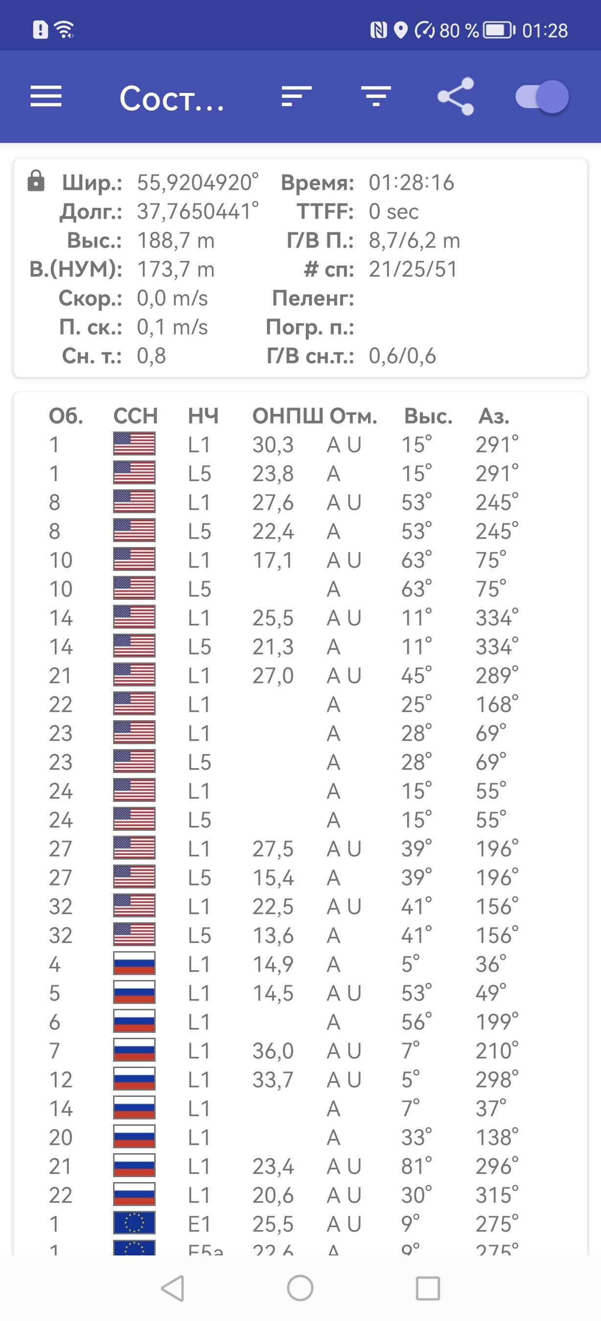 - GPS/A-GPS, Глонасс, Galileo, BDS, QZSS, NavIC