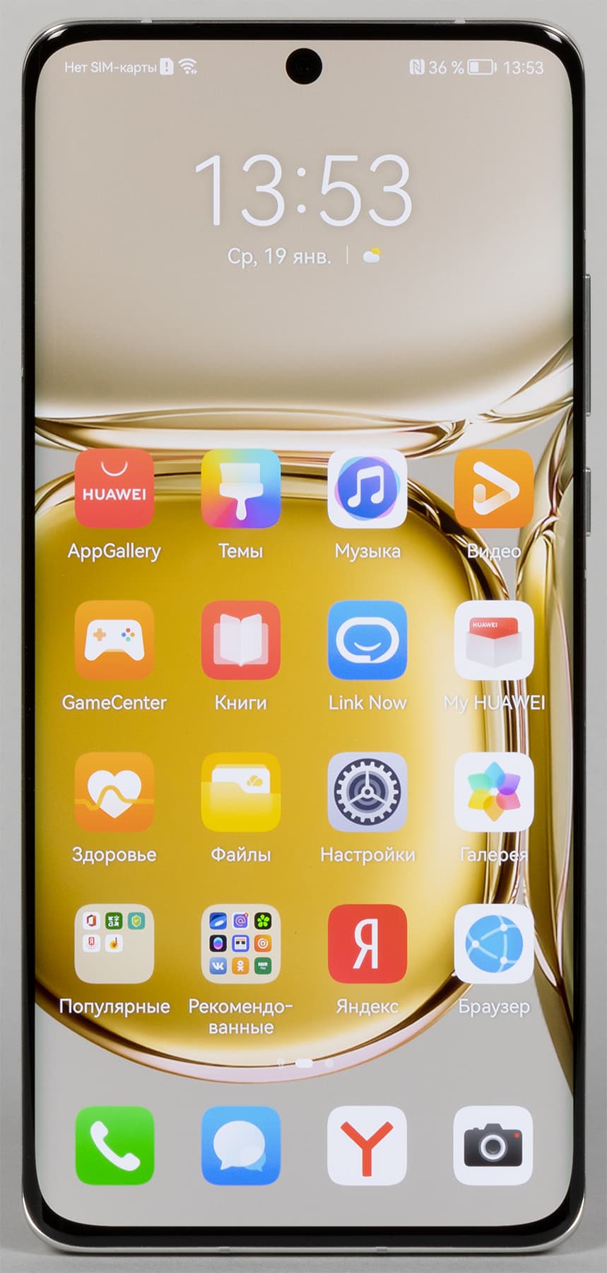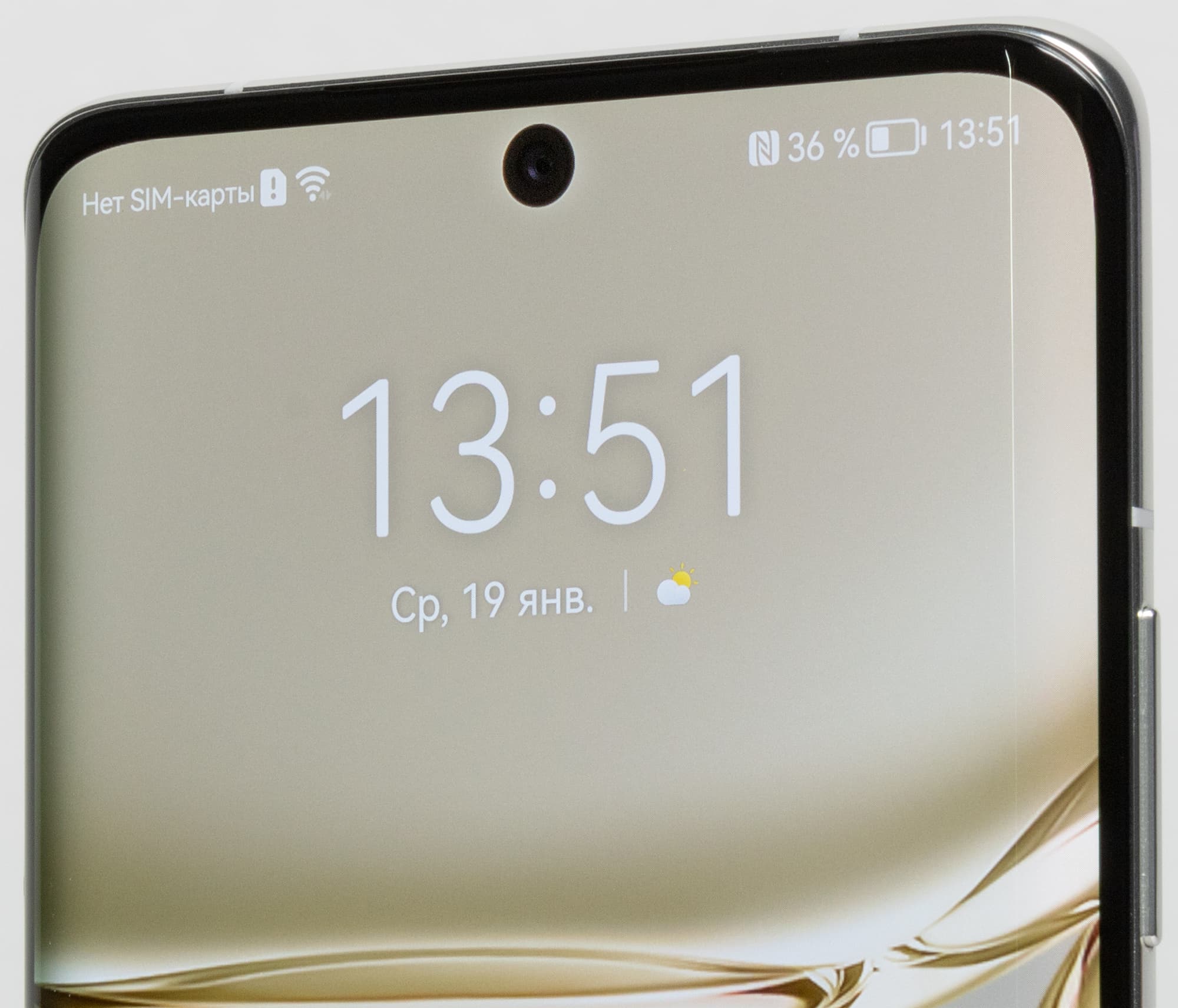 Цветопередача хорошая, цвета в меру насыщенные, цветовой баланс у экранов немного различается. Напомним, что фотография не может служить надежным источником сведений о качестве цветопередачи и приводится только для условной наглядной иллюстрации. В частности, выраженный красноватый оттенок белого и серого полей, присутствующий на фотографиях экрана Huawei P50 Pro, при перпендикулярном взгляде визуально отсутствует, что подтверждается аппаратными тестами с помощью спектрофотометра. Причина в том, что спектральная чувствительность матрицы фотоаппарата неточно совпадает с этой характеристикой человеческого зрения. Заметим, что в данном случае картинка занимает в высоту (при ландшафтной ориентации экрана) всю доступную для вывода изображения область и заходит на загнутые края экрана, что приводит к легкому затемнению и искажению цвета. Также на свету эти области почти всегда бликуют, что еще больше мешает при просмотре изображений, выведенных на весь экран. И даже картинка фильмов с соотношением сторон 16:9 заходит на загибы, что очень не к месту в случае видео.