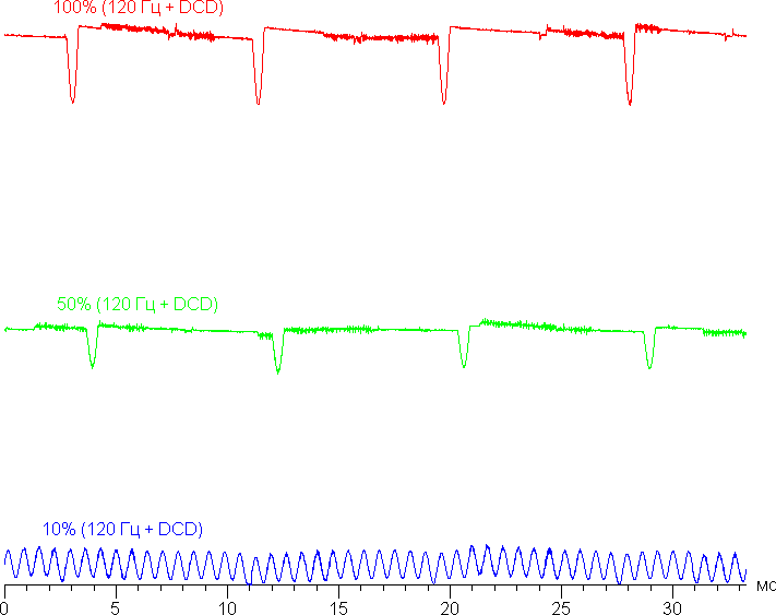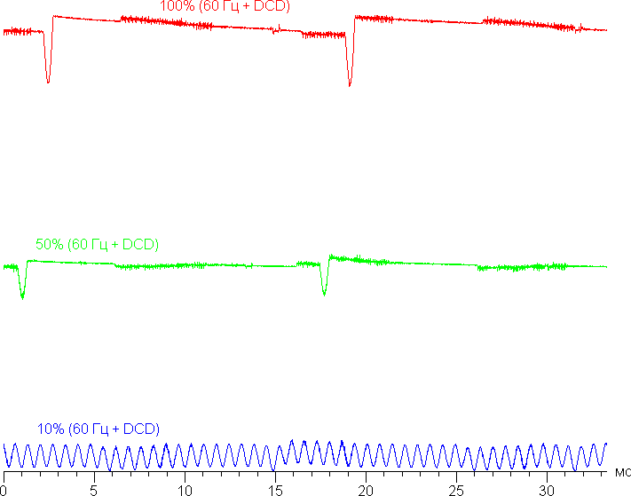 В англоязычной литературе и в новостях обычно используют название DC Dimming (на графиках сократим до DCD). Впрочем, при включении этой функции принципиальных изменений нет. Режим с частотой обновления 60 Гц: