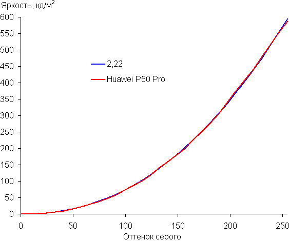Напомним, что в случае OLED-экранов яркость фрагментов изображения динамично меняется в соответствии с характером выводимого изображения — чуть уменьшается для светлых в целом изображений. В итоге полученная зависимость яркости от оттенка (гамма-кривая), скорее всего, не соответствует гамма-кривой статичного изображения, так как измерения проводились при последовательном выводе оттенков серого почти на весь экран.
