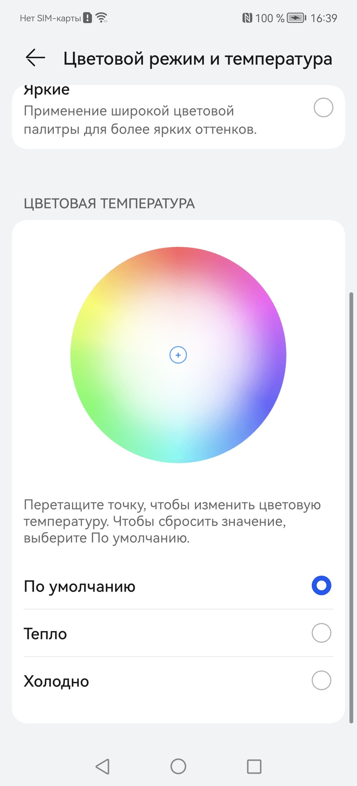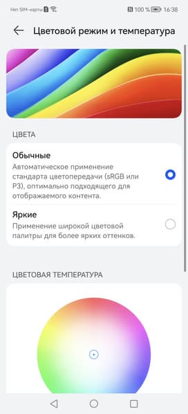 Фотография выше получена при активном профиле Обычные (он выбран по умолчанию) в настройках экрана, всего их два: