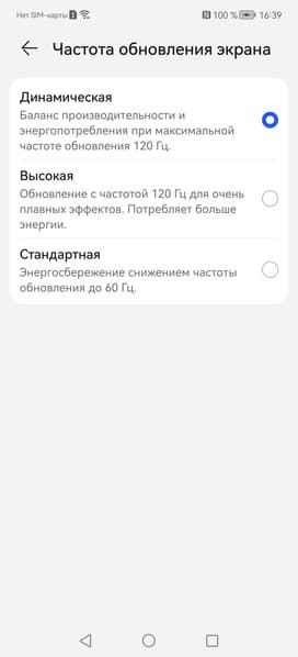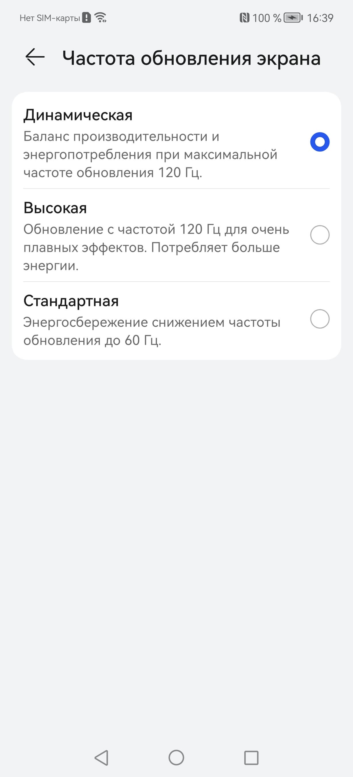 В настройках экрана можно включить режим с повышенной до 120 Гц частотой обновления: