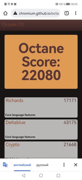 | Google Octane 2 (больше — лучше) | 22080 | 31919 | 21152 | 26144 | 26527 |