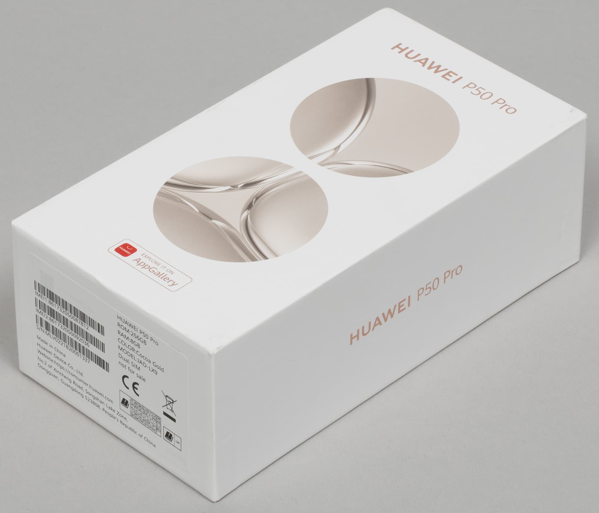 Huawei P50 Pro поставляется в коробке из твердого картона с лаконичным оформлением.