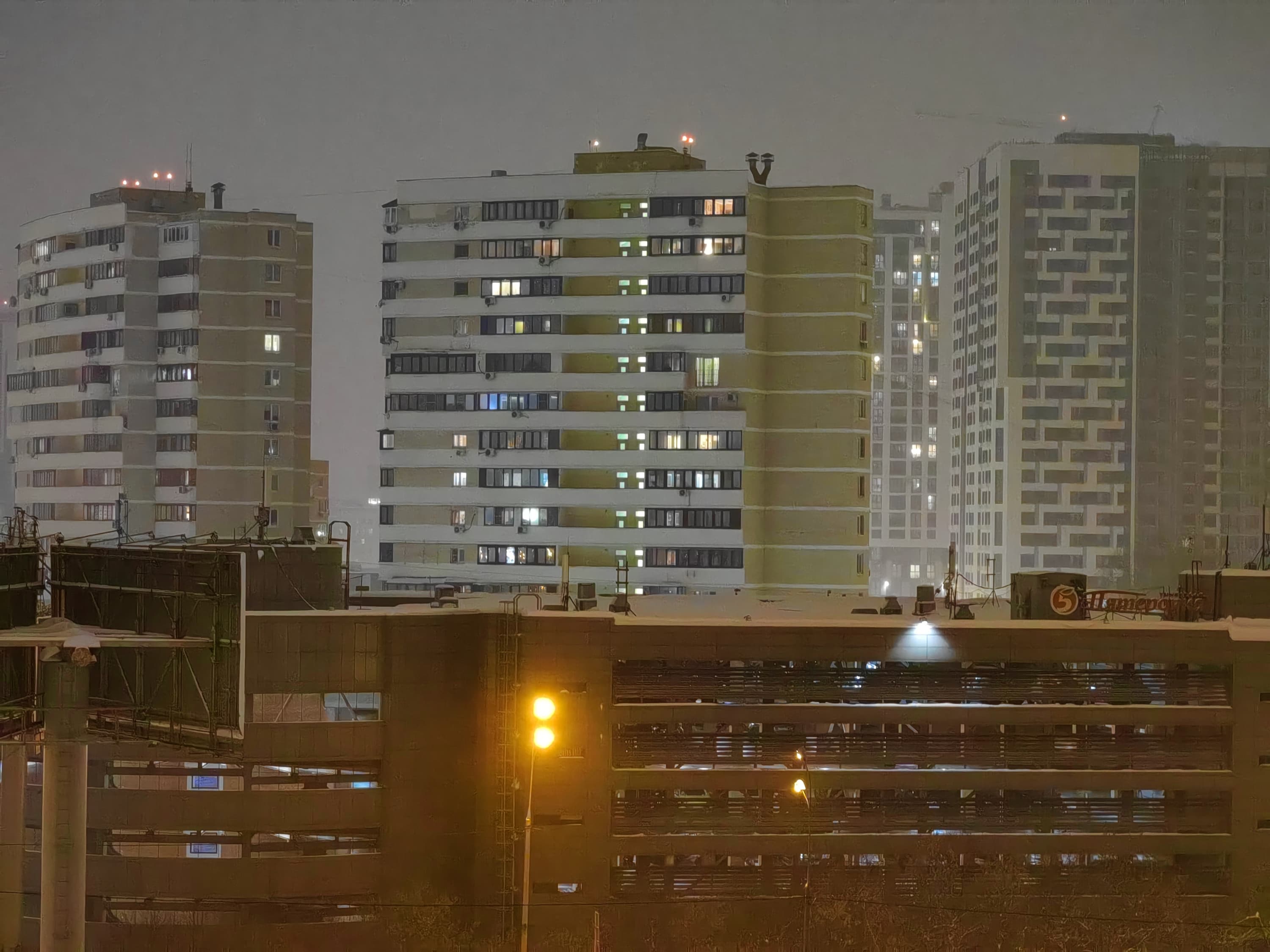 В режиме ночной съемки доступны все те же три модуля, что и в обычном режиме. Поражает уровень детализации в ночи: не только при оптическом, но и при цифровом зуме картинка отлично передает детали. Ночной режим у основной камеры великолепен.