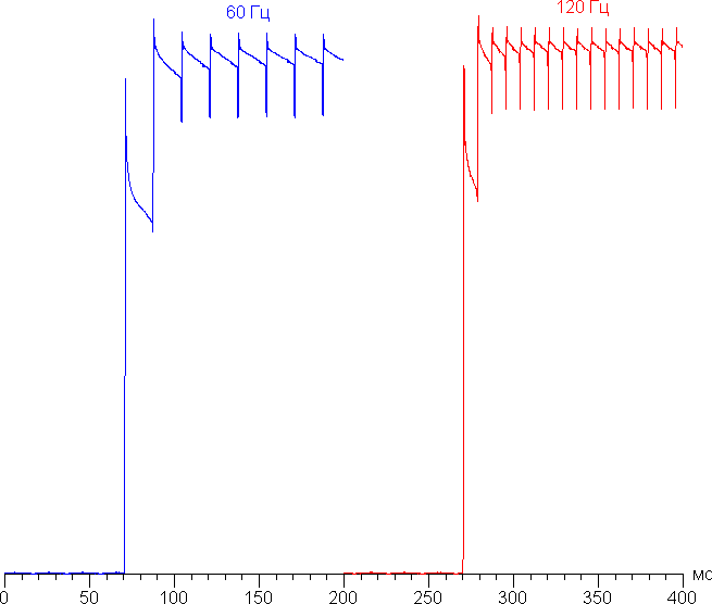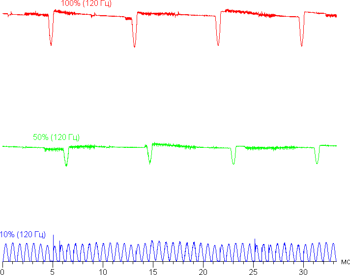 В режиме 120 Гц плавность прокрутки заметно повышается. Посмотрим, изменится ли при этом характер модуляции: