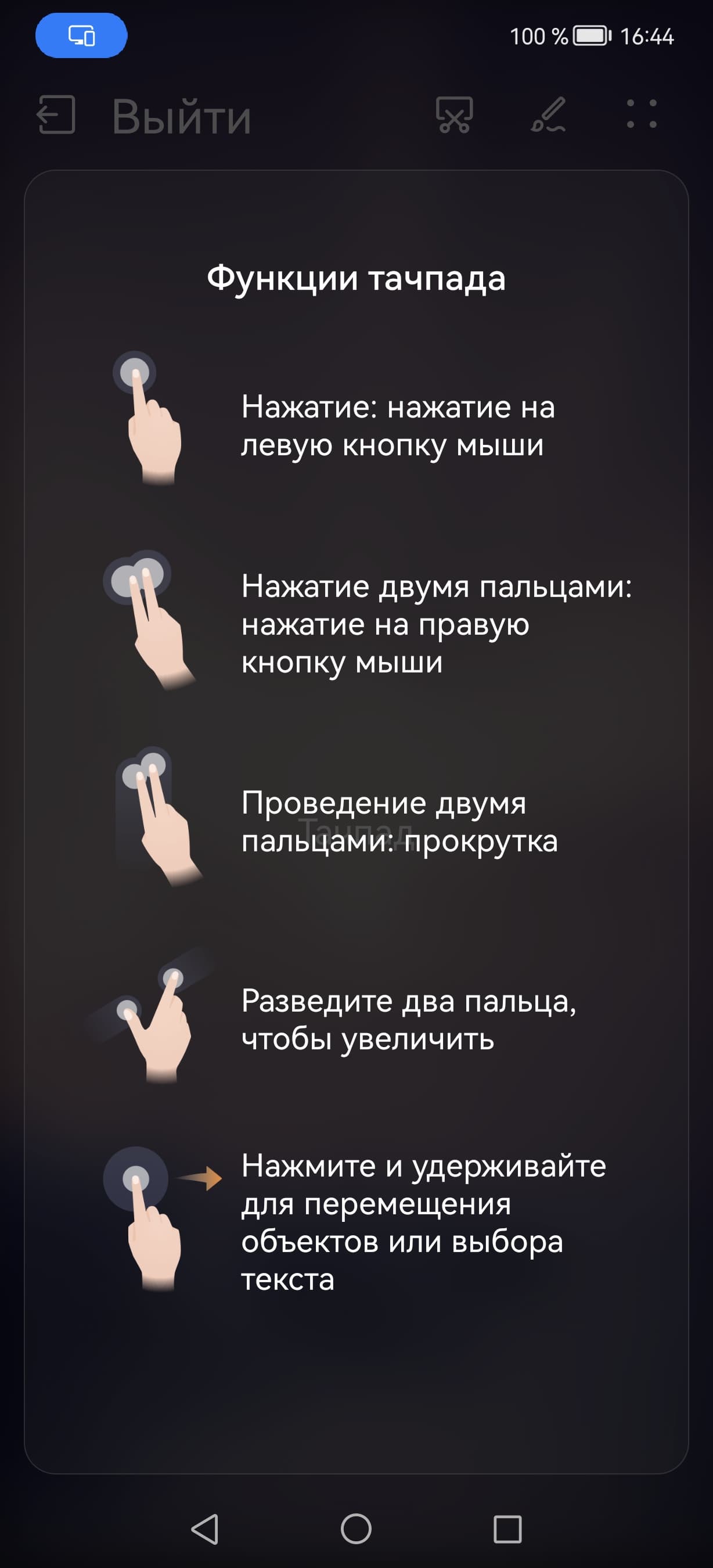 В режиме альтернативного рабочего стола на монитор выводится совершенно другой основной экран, а экран смартфона может использоваться в качестве сенсорной панели координатного ввода,