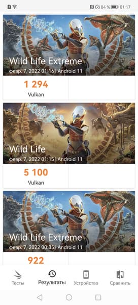 | 3DMark Wild Life Extreme Vulkan (больше — лучше) | 1294 | 1238 | 696 | 1113 | |