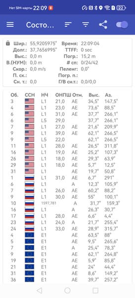 - GPS (L1+L5), Глонасс (L1), BDS (B1I+B1c+B2a+B2b), Galileo (E1+E5a+E5b), QZSS (L1+L5), NavIC