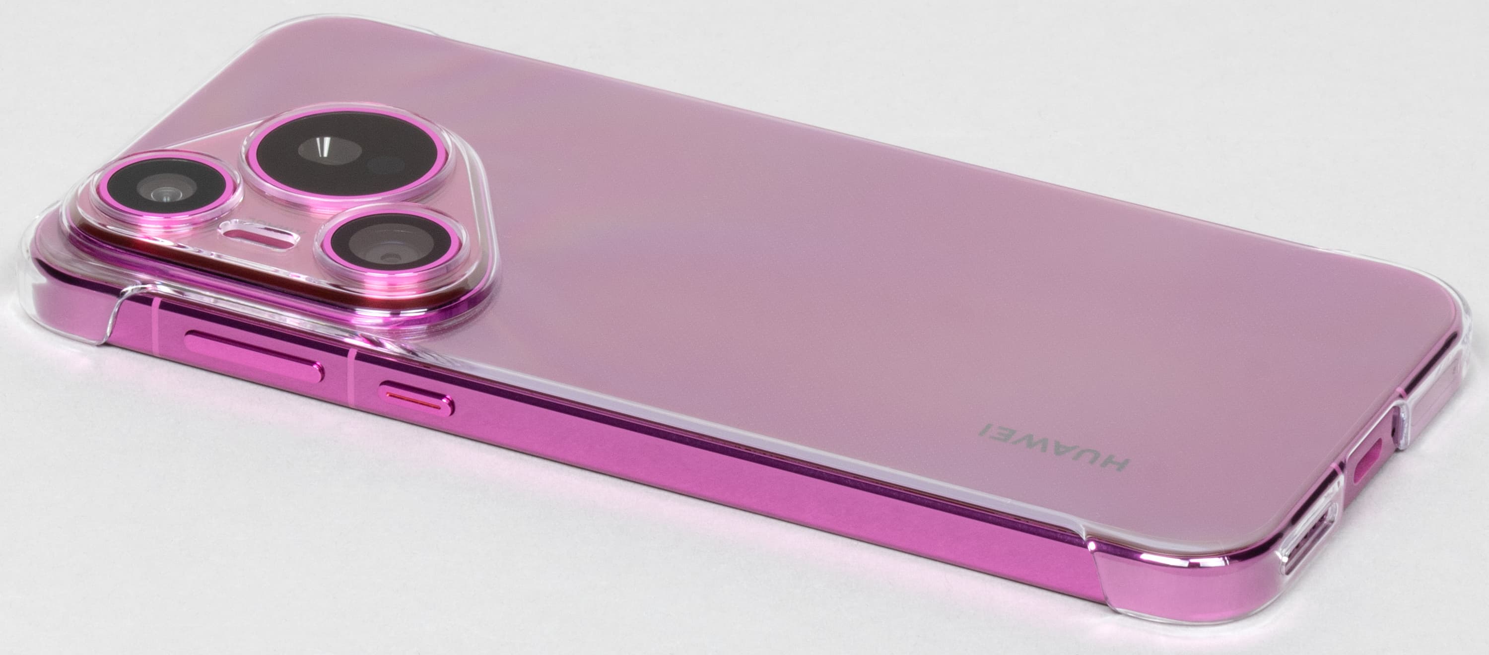 Камеры сзади очень сильно выступают за пределы корпуса. Они объединены в блок затейливой формы — не круглый и не квадратный. Дизайн, прямо скажем, на любителя, да и вообще без объединяющего блока можно было бы обойтись (Apple и Samsung как-то справляются), но в данном случае он выбран как выразительный элемент, визуально отличающий всю новую серию Pura.