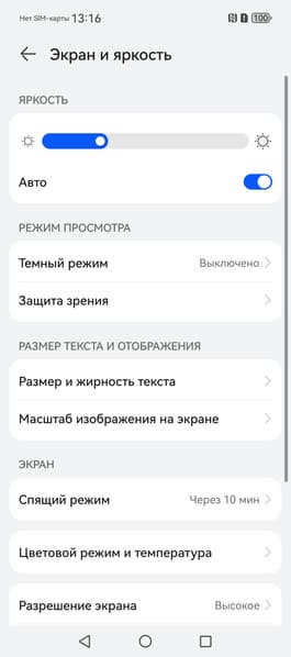 При выводе белого поля во весь экран и при ручном управлении яркостью ее максимальное значение составило 590 кд/м² в обычных условиях, а на очень ярком свету и/или в режиме HDR оно может повышаться до 1500 кд/м² (по крайней мере, на какое-то время и если смартфон не нагрелся). Максимальная яркость очень высокая. В данном случае чем меньше площадь белого на экране, тем он светлее, то есть фактическая максимальная яркость белых участков будет почти всегда выше указанных значений. В итоге, учитывая отличные антибликовые свойства, читаемость экрана днем на солнце должна быть на хорошем уровне. Минимальное значение яркости 1,4 кд/м², пониженный уровень яркости без проблем позволяет использовать устройство даже в полной темноте. Работает автоматическая регулировка яркости по датчику освещенности (он расположен под экраном в верхней части ближе к правому краю по горизонтали). Работа этой функции зависит от положения ползунка регулировки яркости: им пользователь может попытаться выставить желаемый уровень яркости в текущих условиях. Если оставить всё по умолчанию, то в полной темноте функция автояркости уменьшает яркость до 4 кд/м² (очень темно), в условиях освещенного искусственным светом офиса (примерно 550 лк) устанавливает на 120 кд/м² (нормально), в очень ярком окружении (условно соответствует нахождению на прямом солнечном свету) повышает до 1100 кд/м² (достаточно). Результат нас не совсем устроил, поэтому мы в полной темноте чуть увеличили яркость, получив для трех условий, указанных выше, следующие значения: 12, 150 и 1100 кд/м² (что и было нужно). Получается, что функция автоподстройки яркости работает адекватно и в какой-то степени позволяет пользователю настраивать свою работу под индивидуальные требования.