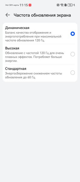 В настройках экрана можно включить режим с повышенной до 120 Гц частотой обновления: