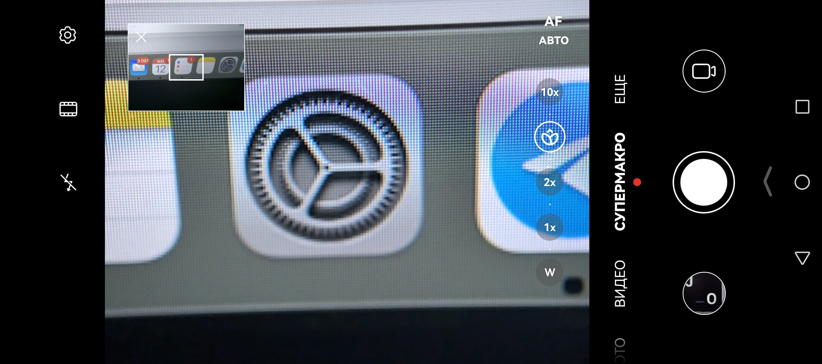 В углу при этом появляется миниатюра с более широким кадром для простоты наведения на цель, но рамка в ней врет. Похоже, смартфон сам немного путается в том, на какой модуль он снимает.