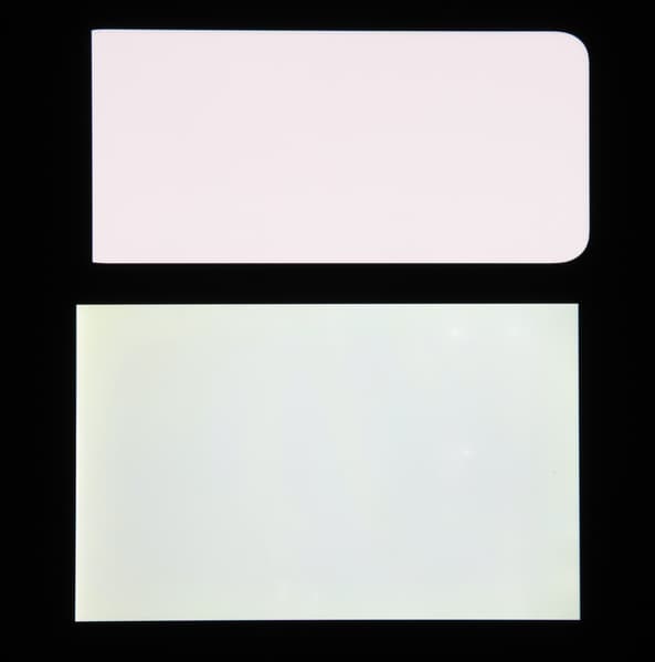 Экран характеризуется великолепными углами обзора. Яркость под углом у обоих экранов заметно уменьшается, но в случае смартфона падение яркости выражено гораздо меньше. В итоге при формально одинаковой яркости экран этого смартфона визуально выглядит гораздо более ярким (в сравнении с ЖК-экранами), так как на экран мобильного устройства часто приходится смотреть как минимум под небольшим углом. Правда, белый цвет при отклонении на большие углы приобретает едва заметный сине-зеленый оттенок. Черный цвет остается просто черным под любыми углами. Он настолько черный, что параметр контрастности в данном случае неприменим. Для сравнения приведем фотографии, на которых на экраны смартфона и второго участника сравнения выведены одинаковые изображения, при этом яркость экранов изначально установлена примерно на 200 кд/м², а цветовой баланс на фотоаппарате принудительно переключен на 6500 К.