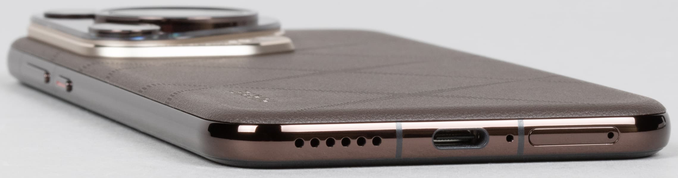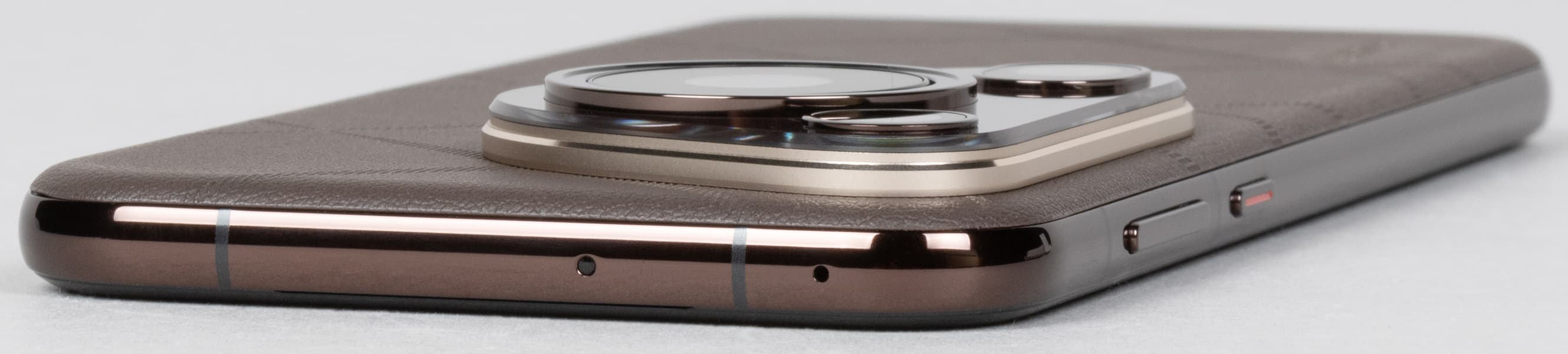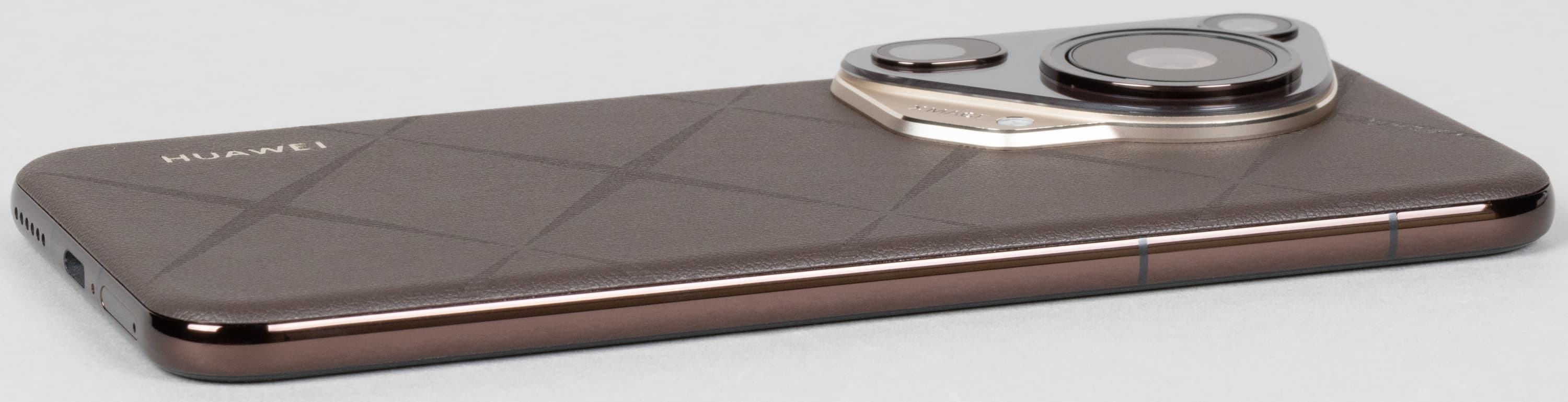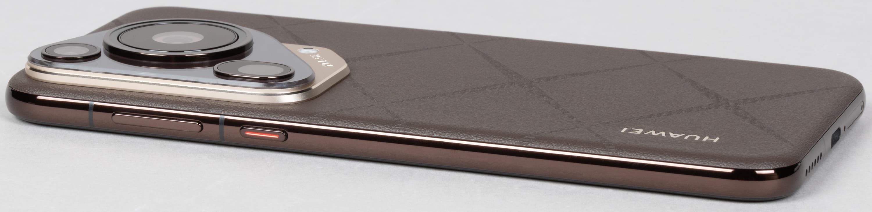 Huawei Pura 70 Ultra выполнен в классическом дизайне с обтекаемыми формами, округлыми боками и сильно закругленными угловыми частями. Задняя панель и переднее стекло экрана также имеют скосы по всем четырем сторонам. За счет всех этих округлых элементов смартфон комфортнее ложится в ладонь, но и удерживается хуже, норовит выскользнуть, тем более, что боковая рамка сделана из гладкого скользкого металла.