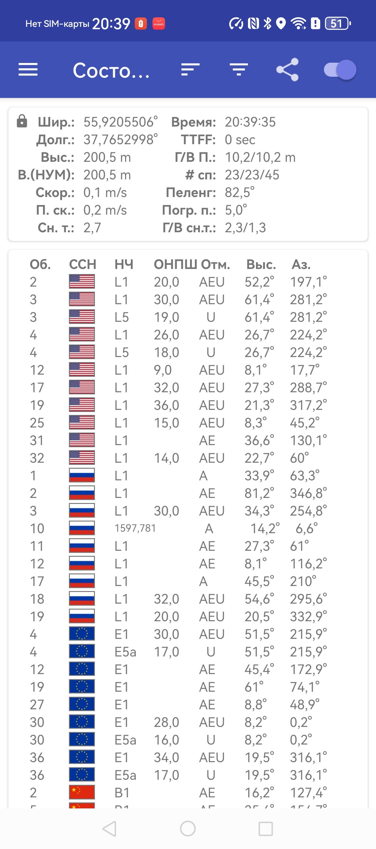 Двухканальный модуль спутниковой навигации работает с GPS, а также Глонасс, BDS, Galileo, QZSS и NavIC. Первые спутники при холодном старте обнаруживаются быстро, точность позиционирования не вызывает претензий.