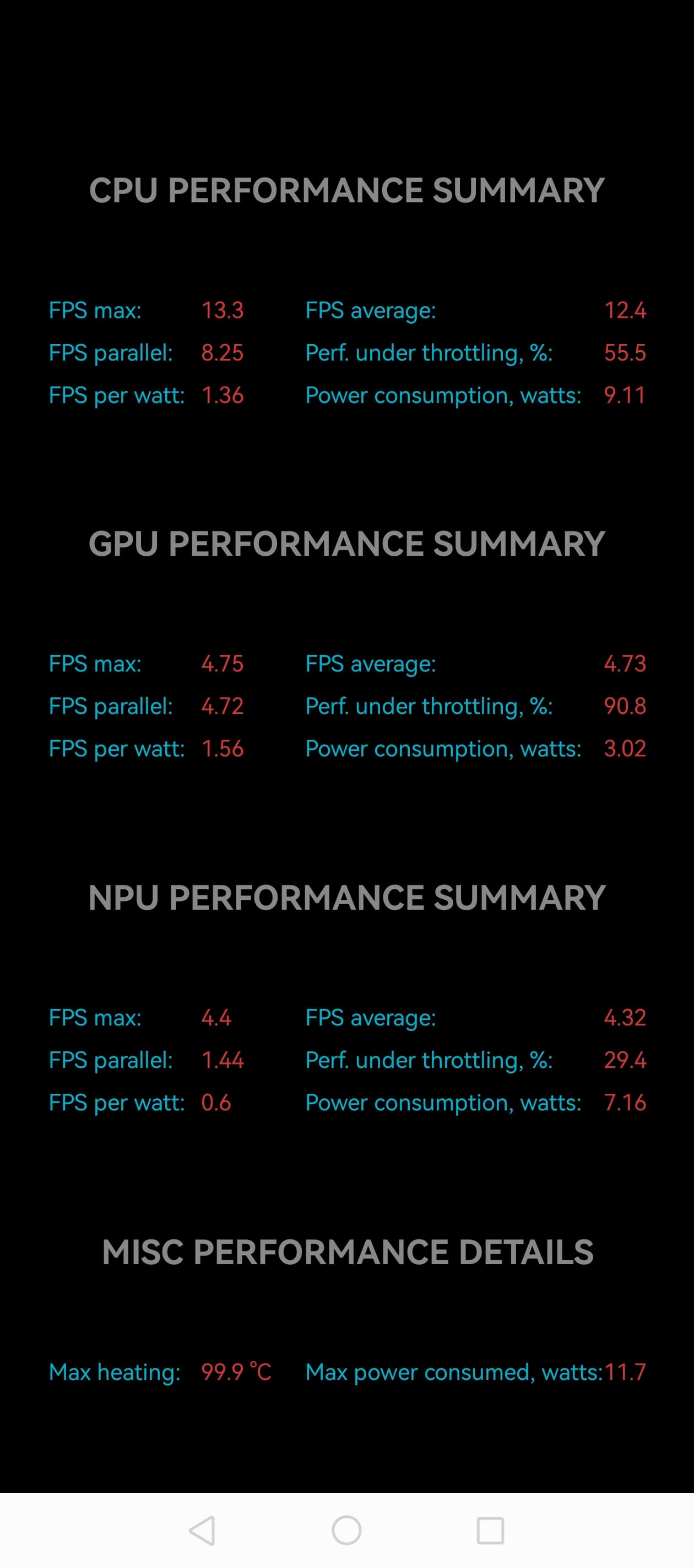 Тест на снижение производительности при нагреве мы проводим с помощью программы Burnout Benchmark, которая позволяет нагружать CPU, GPU и NPU: