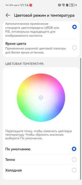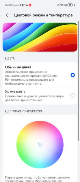 Фотография выше получена при активном профиле Обычные цвета в настройках экрана, всего их два: