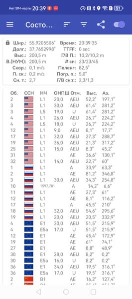 - GPS (L1+L5), Глонасс (L1), BDS (B1I+B1c+B2a+B2b), Galileo (E1+E5a+E5b), QZSS (L1+L5), NavIC