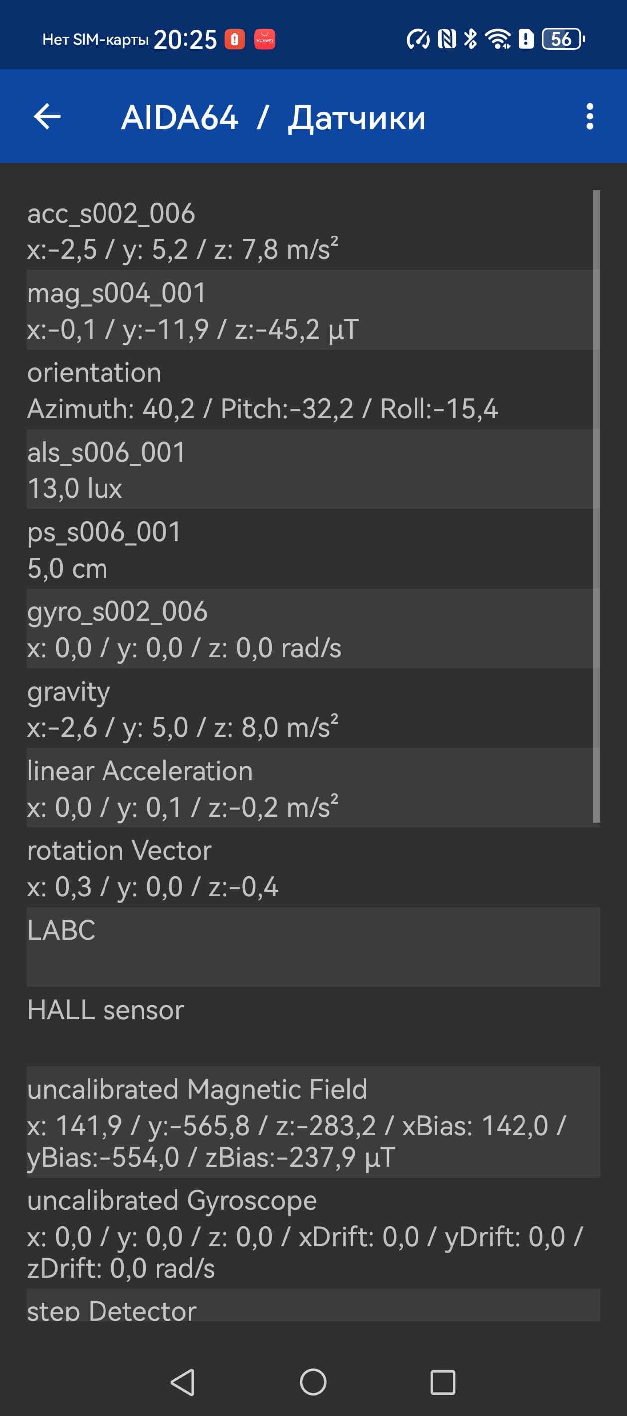 - Датчики приближения и освещения, магнитного поля, акселерометр, гироскоп
