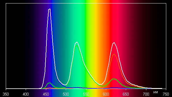 Видно, что в этом случае перекрестного подмешивания компонент нет, то есть родное для экрана цветовое пространство близко к Display P3.