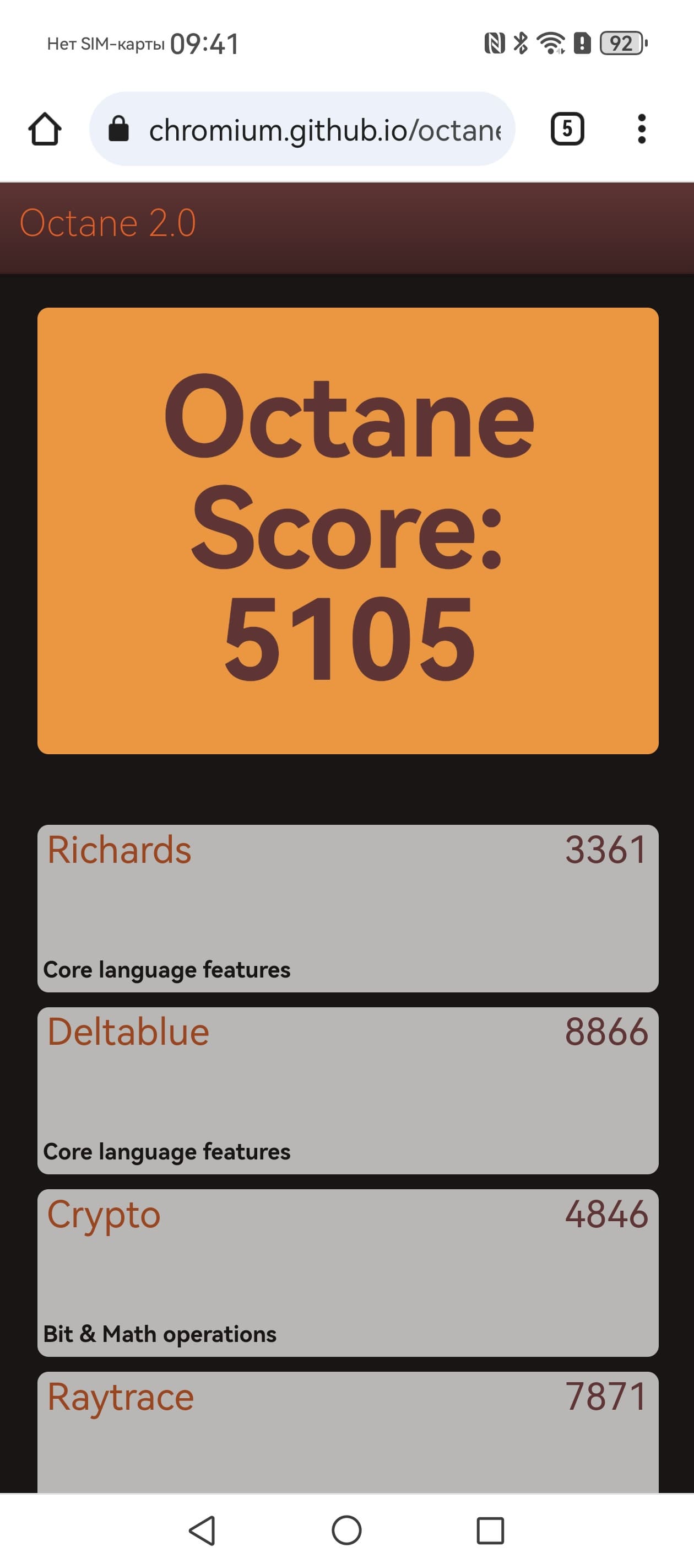 | Google Octane 2 (больше — лучше) | 5180 | 21955 | 30529 | 52617 | 70812 |