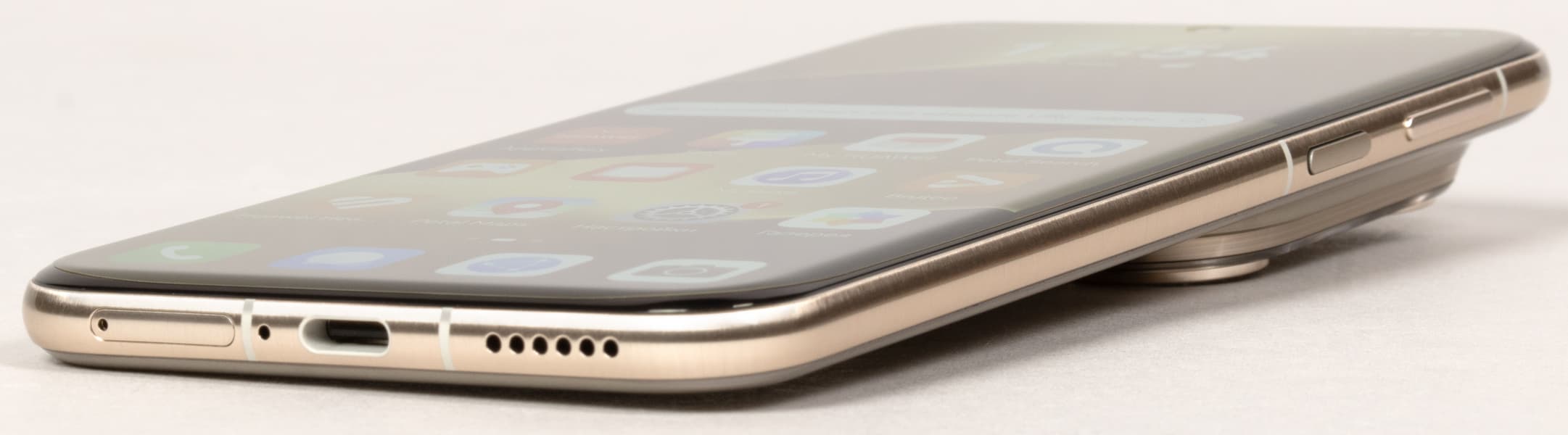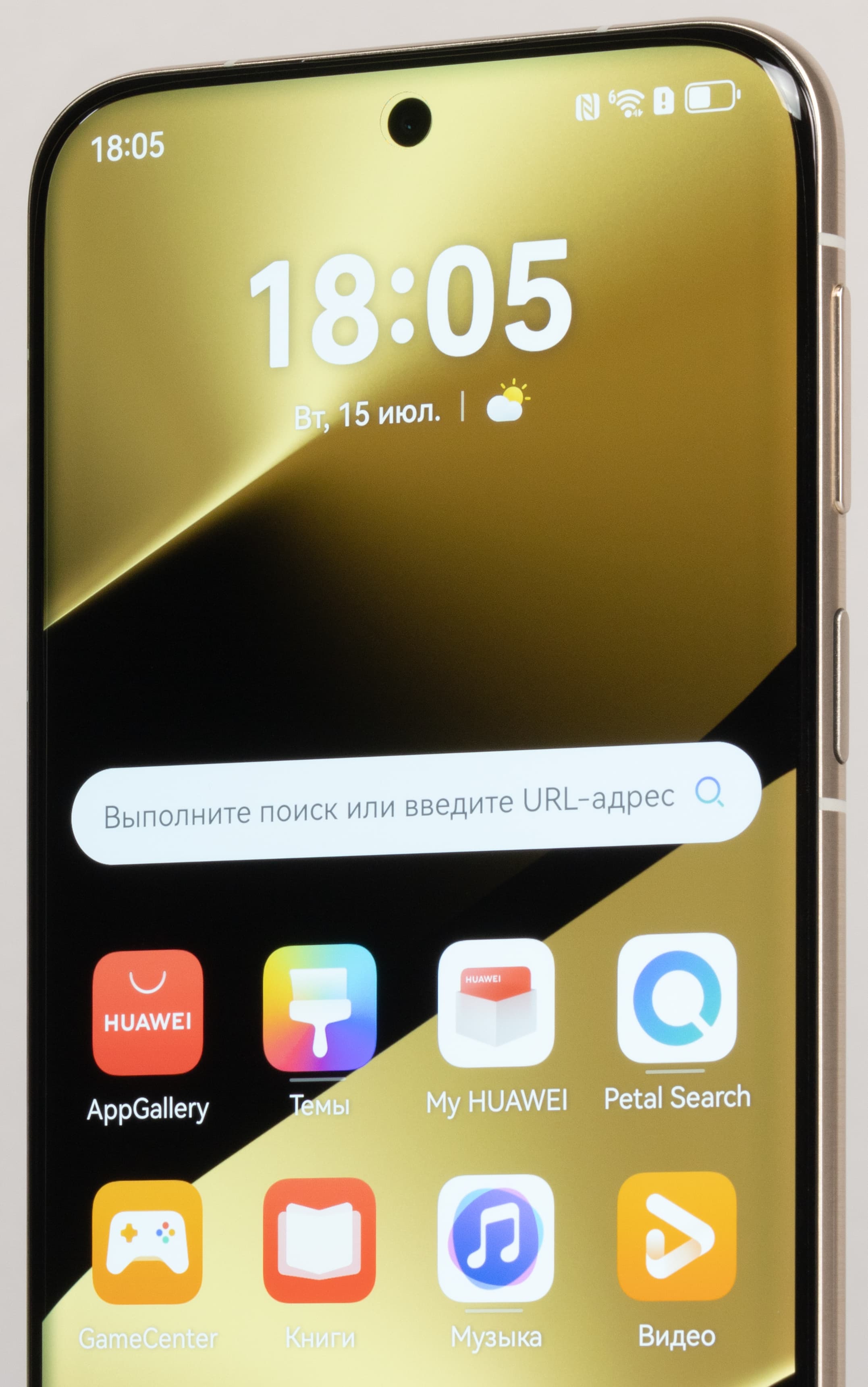 Материалы корпуса вызывают уважение. Боковая рамка выполнена из гладкого алюминия, выкрашенного в общий цвет корпуса. То есть у золотистого варианта она золотистая, а у черного — черная. Передняя и задняя панели выполнены из настоящего стекла. Экран прикрыт защитным стеклом Kunlun Glass 2 с загнутыми краями и очень тонкой рамкой вокруг матрицы дисплея.