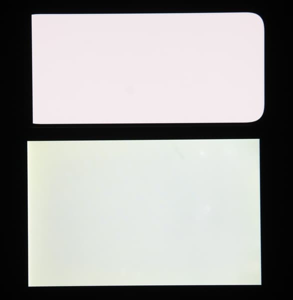 Экран характеризуется великолепными углами обзора. Яркость под углом у обоих экранов заметно уменьшается (если сравнивать с Nexus 7), но в случае смартфона падение яркости выражено гораздо меньше. В итоге, даже если установить формально одинаковую яркость, то экран этого смартфона визуально выглядит гораздо более ярким (в сравнении с ЖК-экранами), так как на экран мобильного устройства часто приходится смотреть как минимум под небольшим углом. Правда, у смартфона белый цвет при отклонении на очень большие углы приобретает легкий сине-зеленый оттенок, но черный цвет остается просто черным под любыми углами. Он настолько черный, что параметр контрастности в данном случае неприменим. Для сравнения приведем фотографии, на которых на экраны смартфона и второго участника сравнения выведены одинаковые изображения, при этом яркость экранов изначально установлена примерно на 200 кд/м², а цветовой баланс на фотоаппарате принудительно переключен на 6500 К.