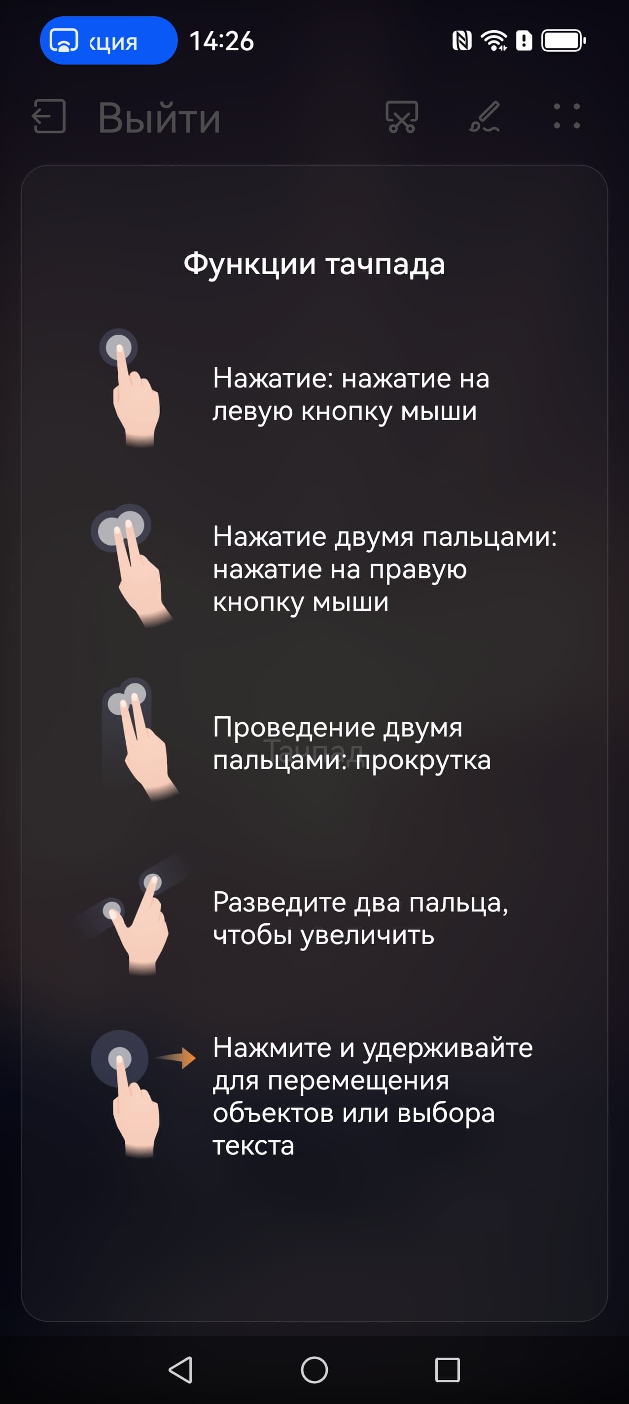В режиме альтернативного рабочего стола на монитор выводится совершенно другой основной экран, а экран смартфона может использоваться в качестве сенсорной панели координатного ввода: