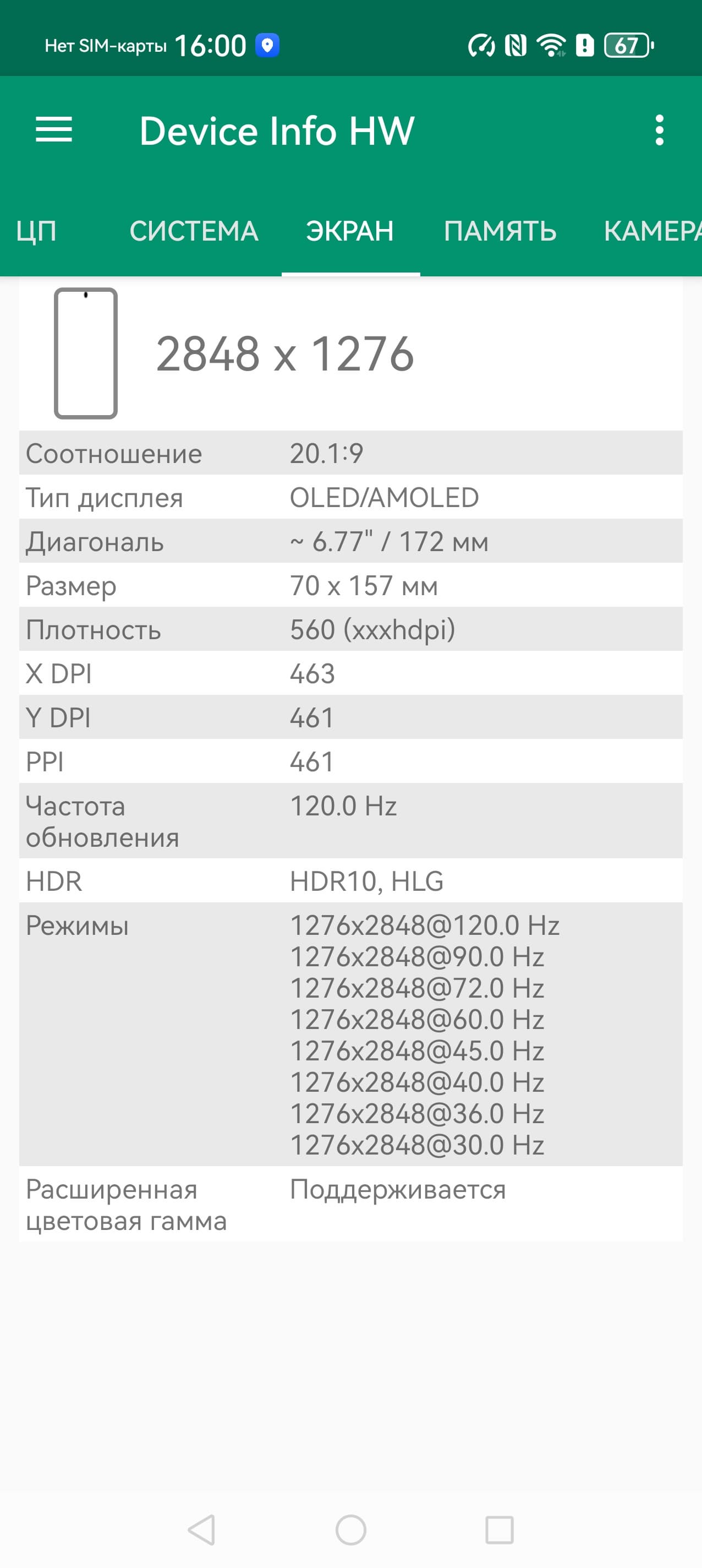 - Сенсорный дисплей AMOLED, 6,8″, 1276×2848, 20:9, 459 ppi, 120 Гц