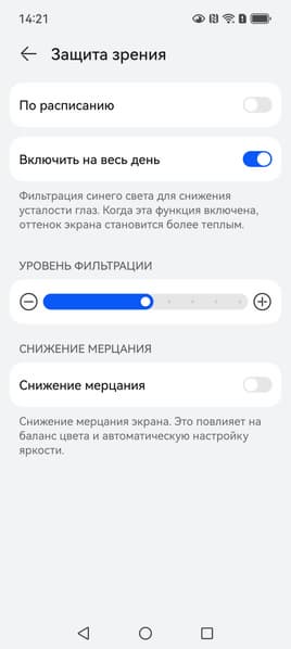 Разумеется есть функция снижения интенсивности синей компоненты. В принципе, яркий свет может приводить к нарушению суточного (циркадного) ритма (см. статью про iPad Pro с дисплеем 9,7 дюйма), но все решается снижением яркости до низкого, но еще комфортного уровня, а искажать цветовой баланс, уменьшая вклад синего, нет абсолютно никакого смысла.