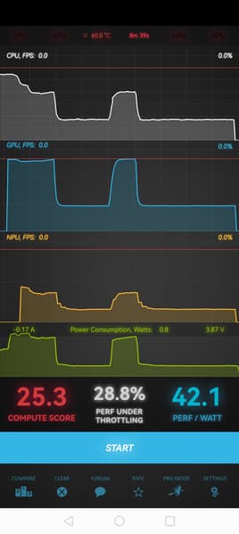 Тест на снижение производительности при нагреве мы проводим с помощью программы Burnout Benchmark, которая позволяет нагружать CPU, GPU и NPU: